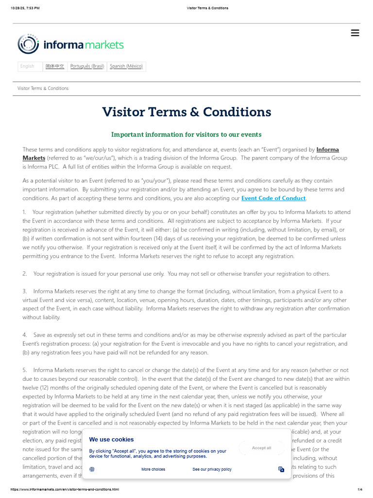 https://www.informamarkets.com/en/visitor-terms-and-conditions.html 1/4