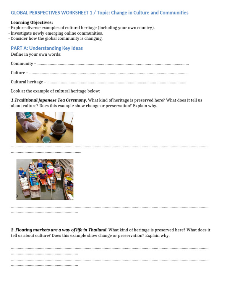 GLOBAL PERSPECTIVES WORKSHEET 1 / Topic: Change in Culture and Communities