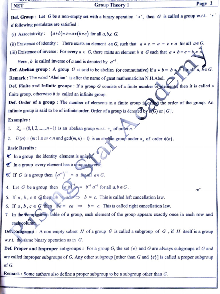 Def. Group: Let G be a non-empty set with a binary operation , hen G is called a group w.r.t.