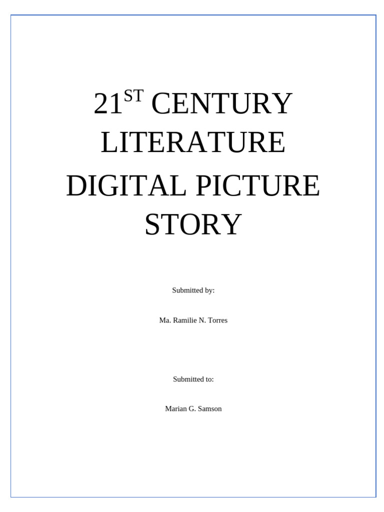 The document is a submission titled 'Digital Picture Story' by Ma. Ramilie N. Torres. It is addressed to Marian G. Samson. The context suggests it is related to 21st-century literature.