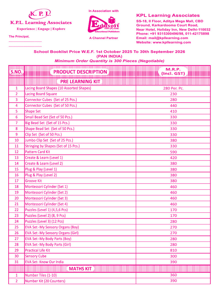 School Booklist Price W.E.F. 1st October 2025 To 30th September 2026