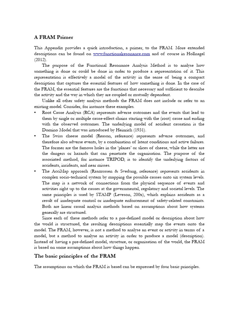 completely different causes. The FRAM – and Resilience Engineering – takes different