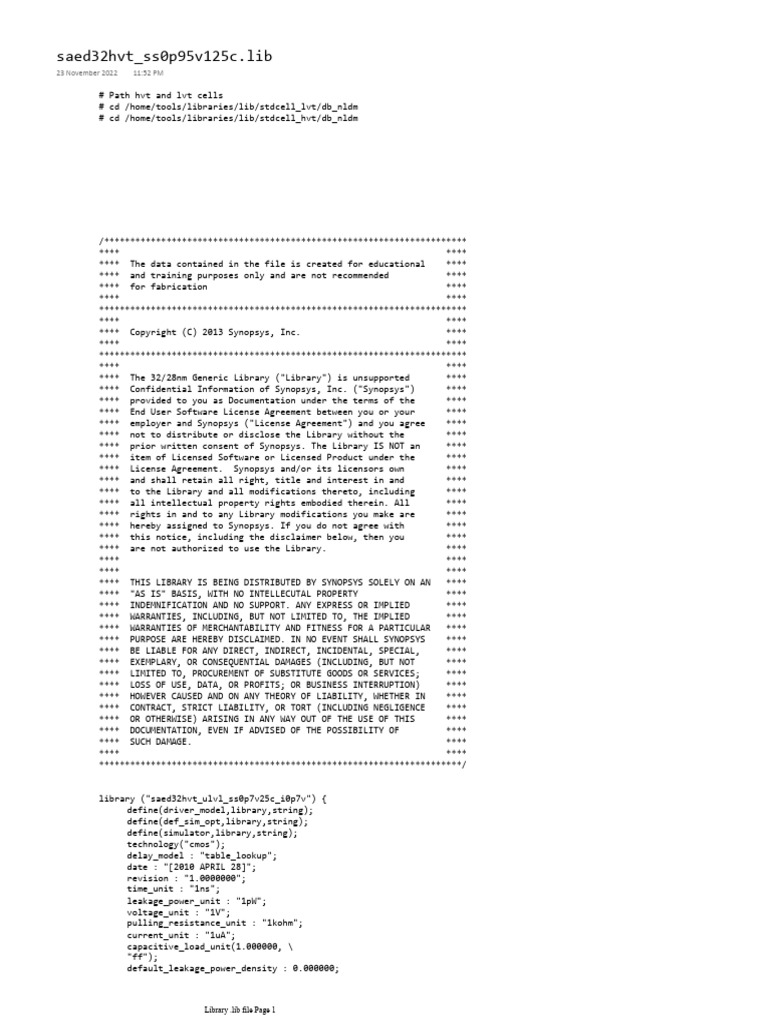 **** The 32/28nm Generic Library ("Library") is unsupported ****