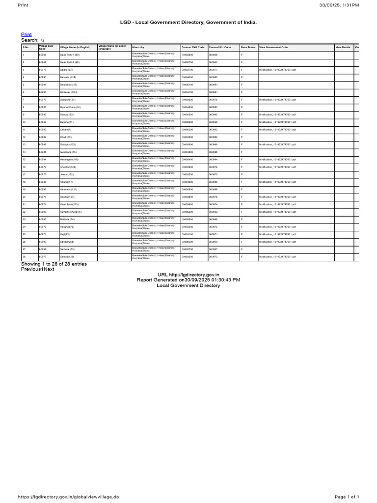 S No Village Name (In English) Hierarchy Census 2001 Code Census2011 Code Pesa Status View Government Order View Details View History