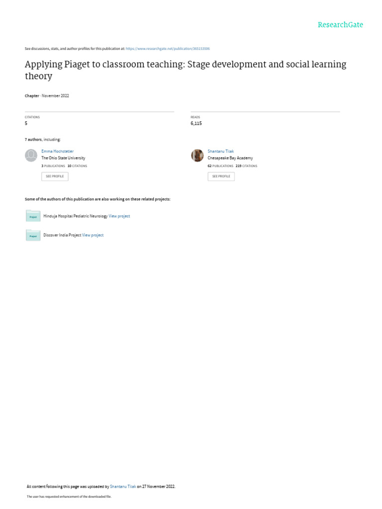 Per the arguments in this paper, it can be seen that while Piaget’s theory does explain