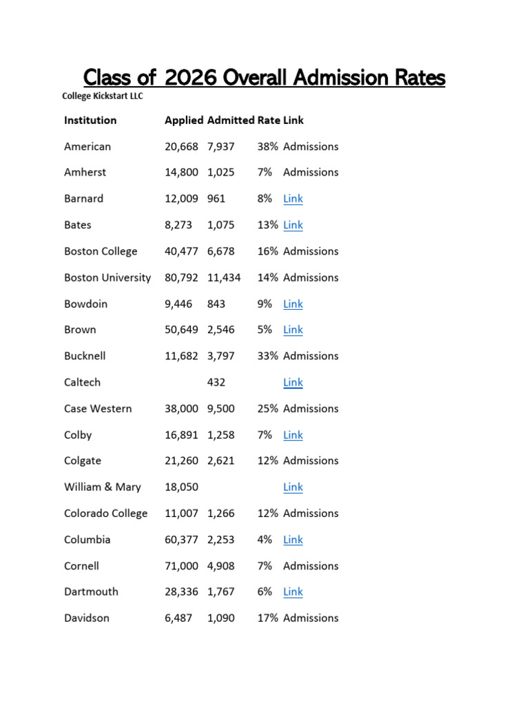 Institution Applied Admitted Rate Link