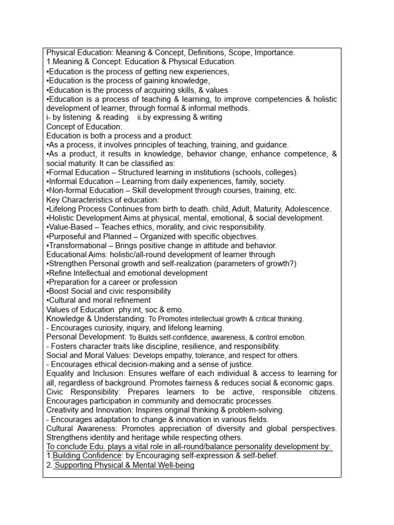 Physical Education: Meaning & Concept, Definitions, Scope, Importance.