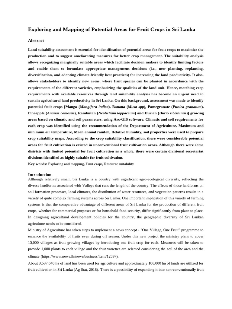 systematic fruit crop cultivation even in Non- traditional areas in Sri Lanka. By exploring the potential areas for