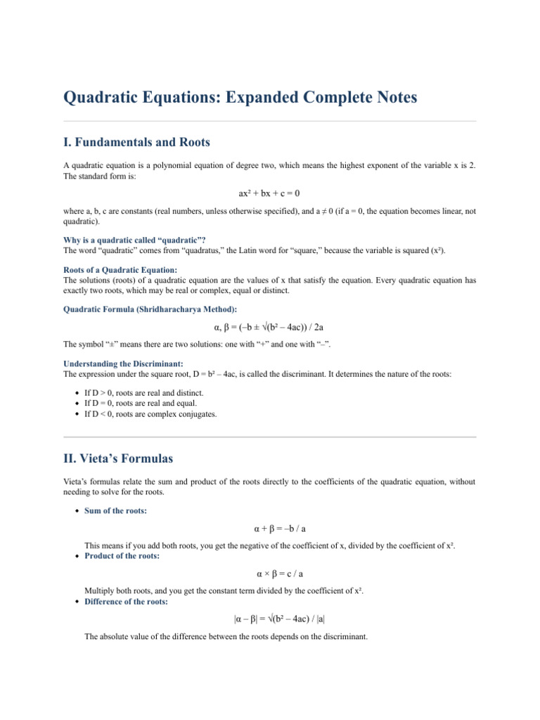 Vieta’s formulas relate the sum and product of the roots directly to the coefficients of the quadratic equation, without