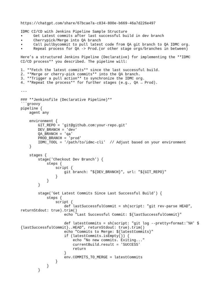 Here’s a structured Jenkins Pipeline (Declarative) for implementing the **IDMC
