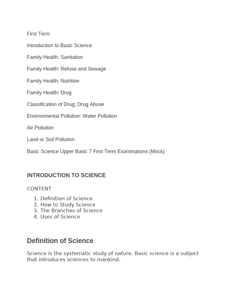 Basic Science Upper Basic 7 First Term Examinations (Mock)