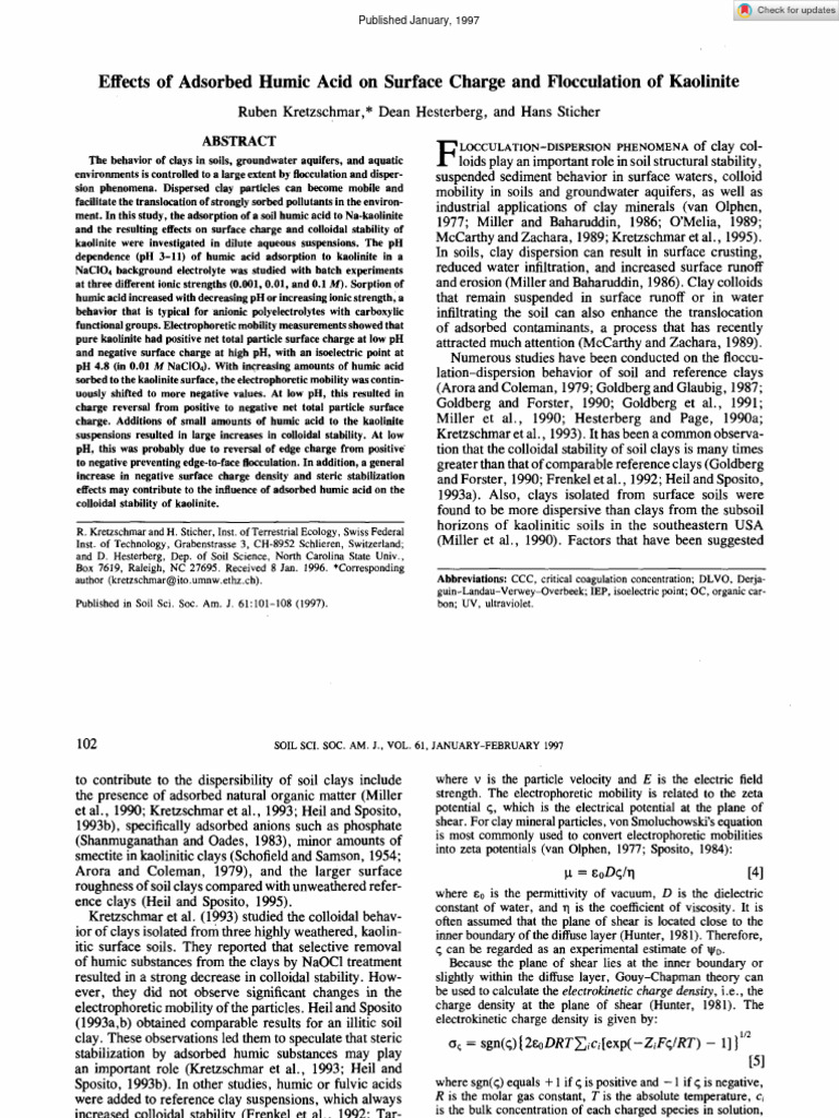 electrophoretic mobility of the particles. Heil and Sposito charge density at the plane of shear (Hunter, 1981). The