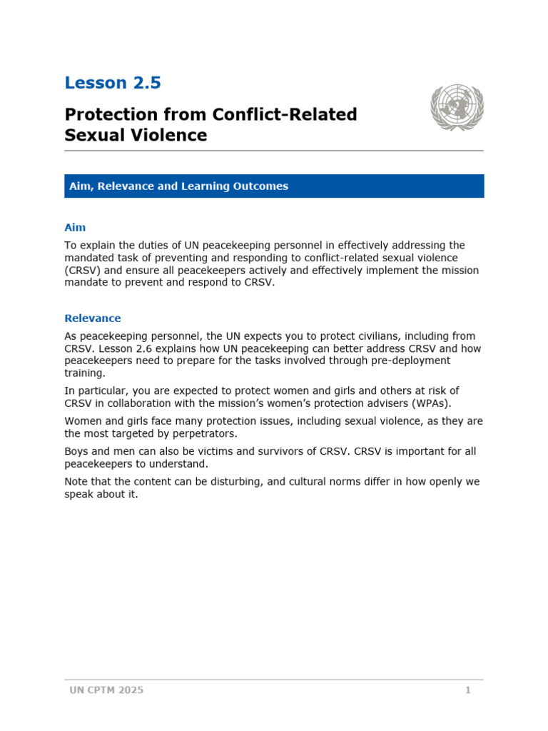 Lesson 2.5 Protection from Conflict-Related Sexual Violence
