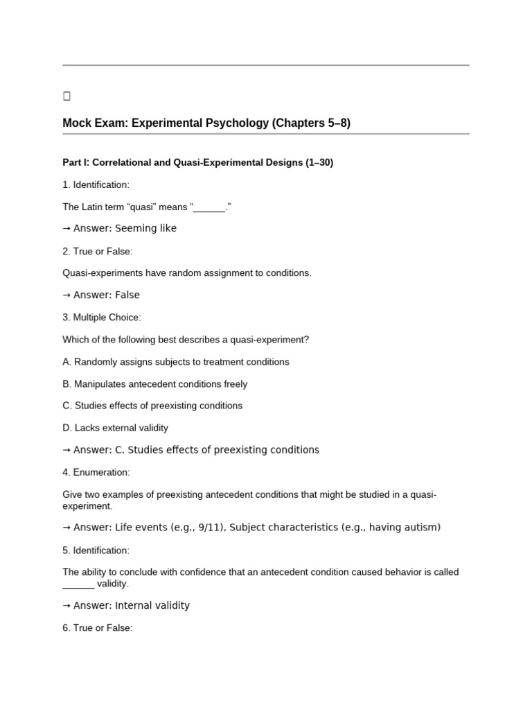 Mock Exam: Experimental Psychology (Chapters 5–8)