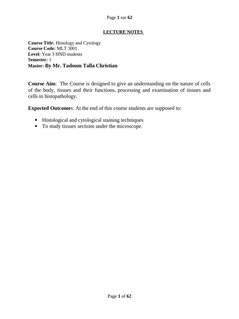 Cytology and Histology Note Fro Level HND 1
