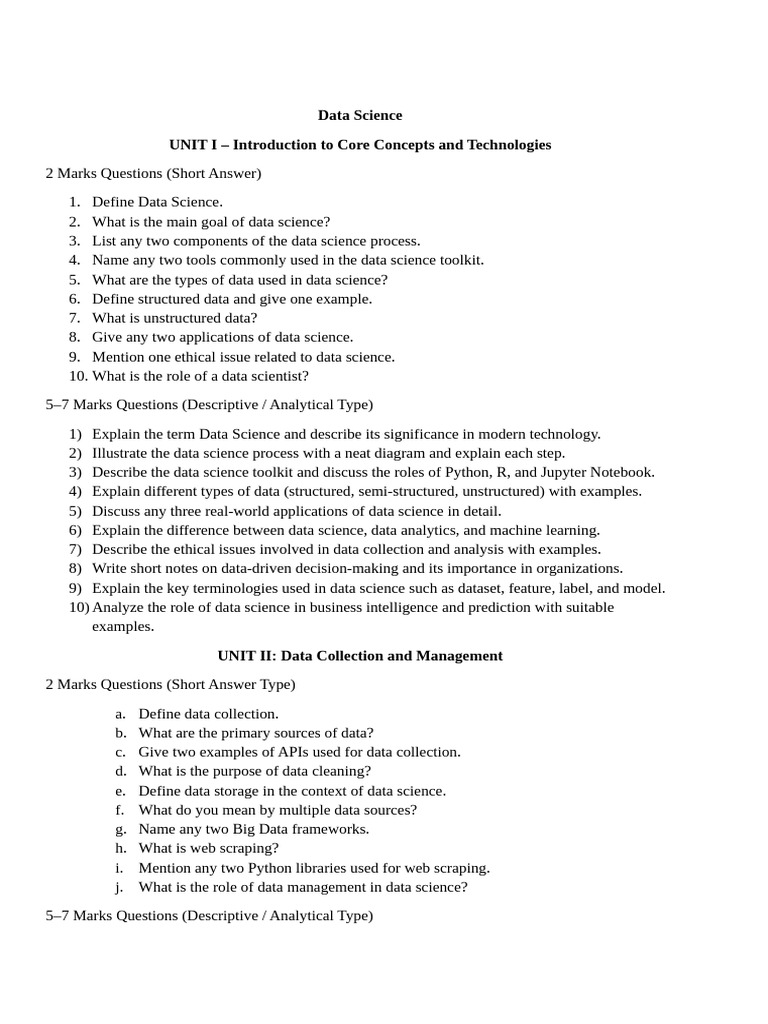1) Explain the term Data Science and describe its significance in modern technology.