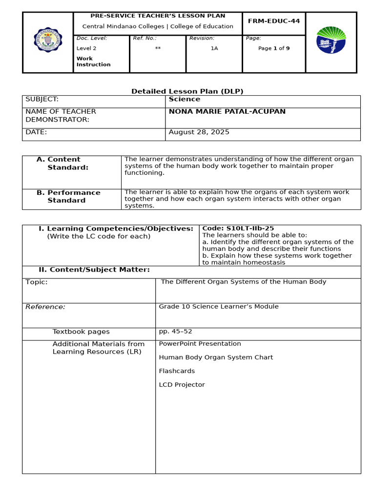 Detailed Lesson Plan (DLP)