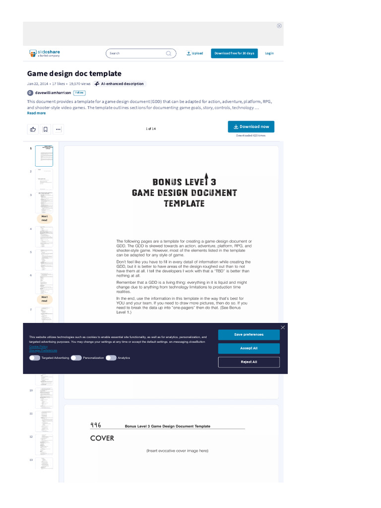 1. T Bonus Levei 3 Game Design Document Template The following pages are a template for creating a game design document or GDD. The GDD is skewed towards an