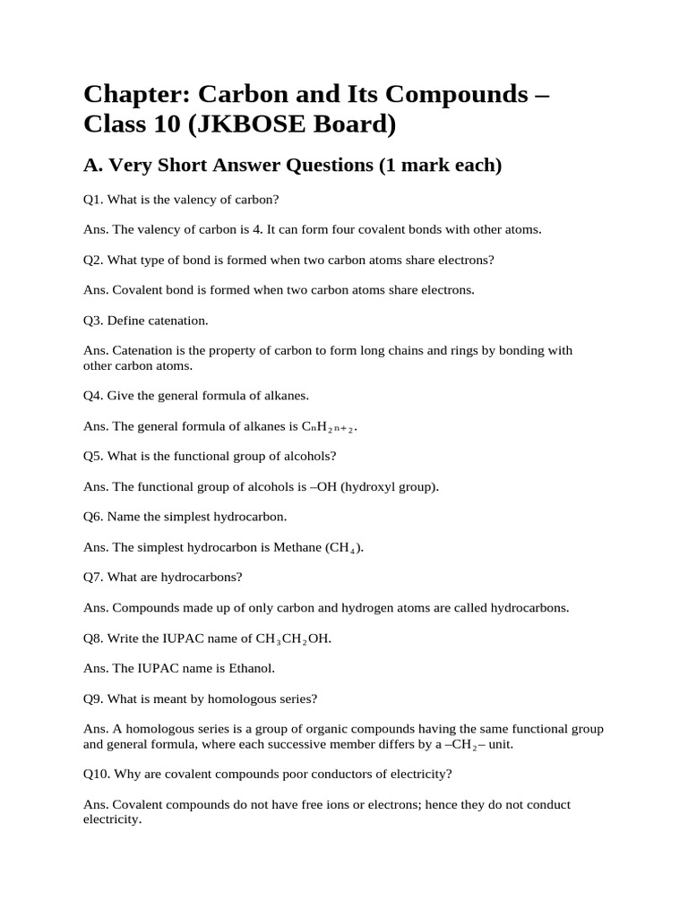 Chapter: Carbon and Its Compounds –