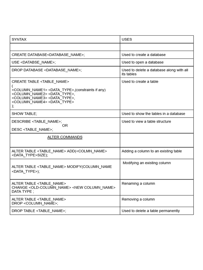 CREATE TABLE <TABLE_NAME> Used to create a table