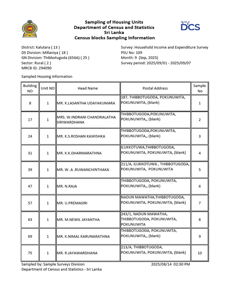 Sampled by: Sample Surveys Division 2025/08/14 02:30 PM