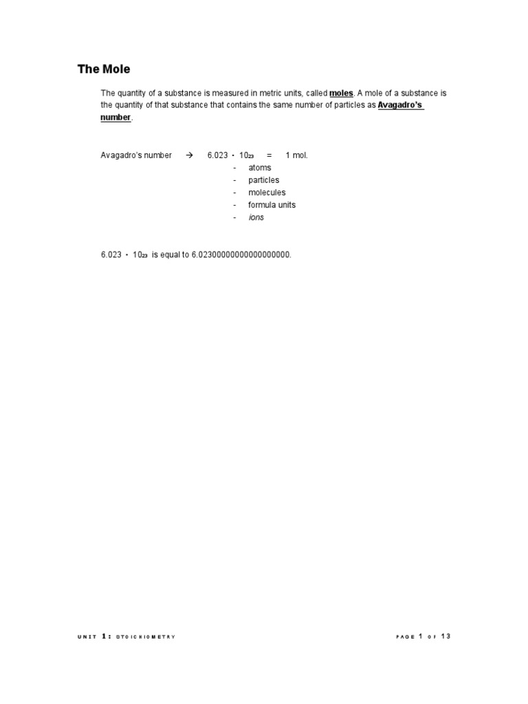 UNIT 1: STOICHIOMETRY PAGE 1 OF 13