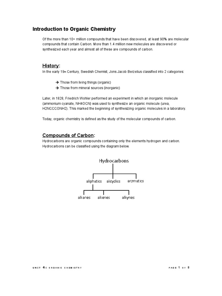 UNIT 4: ORGANIC CHEMISTRY PAGE 1 OF 8