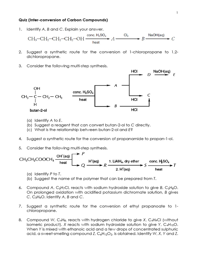 7. Suggest a synthetic route for the conversion of ethyl propanoate to 1-