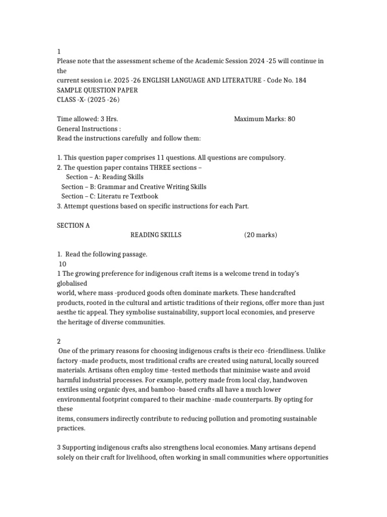 current session i.e. 2025 -26 ENGLISH LANGUAGE AND LITERATURE - Code No. 184