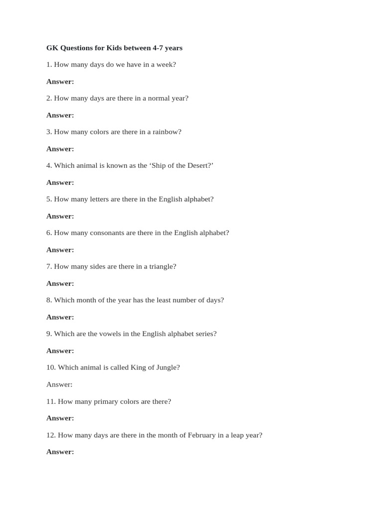 things. Here we have sorted some of the important General Knowledge Questions for kids to