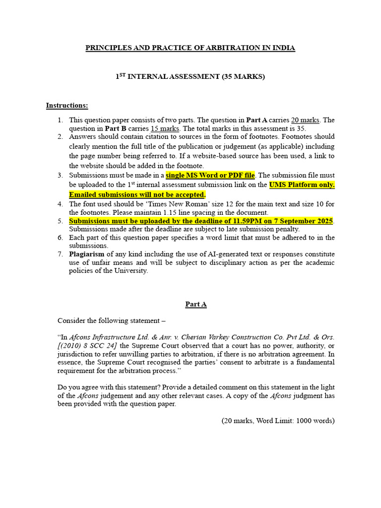 be uploaded to the 1st internal assessment submission link on the UMS Platform only.
