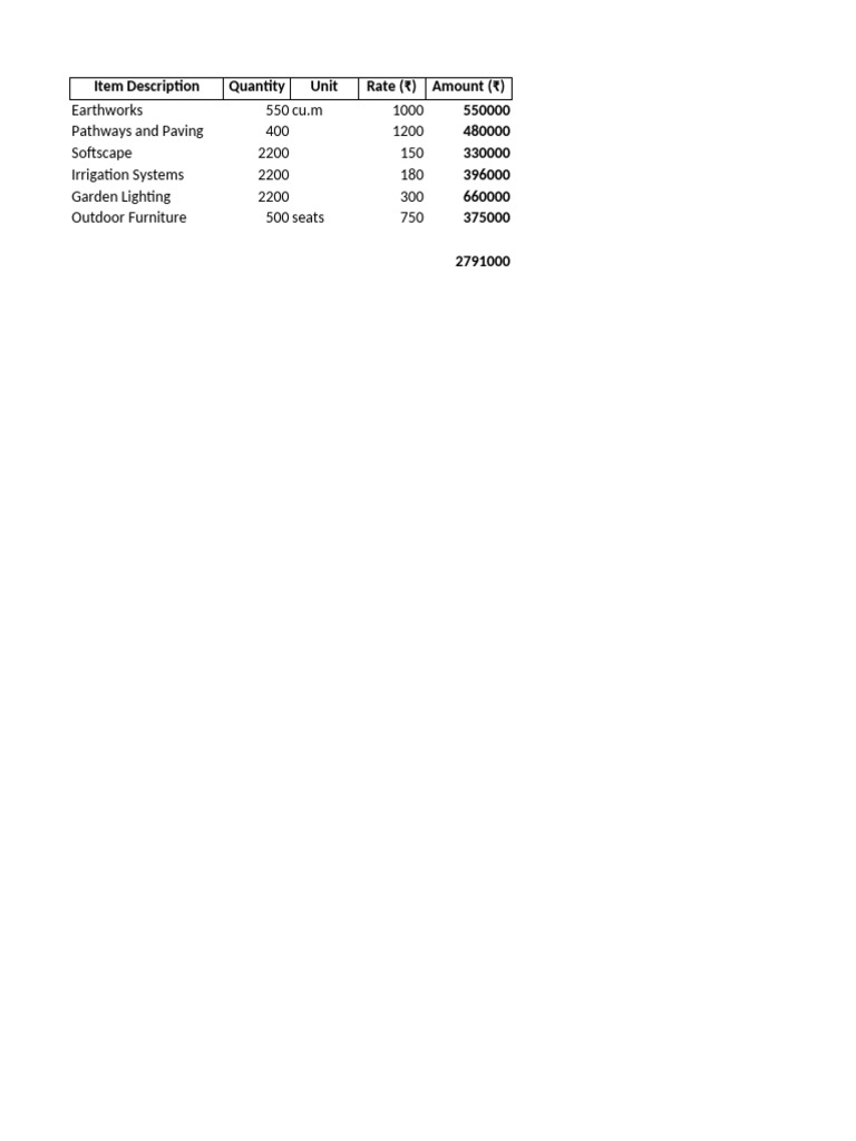 Item Description Quantity Unit Rate (₹) Amount (₹)
