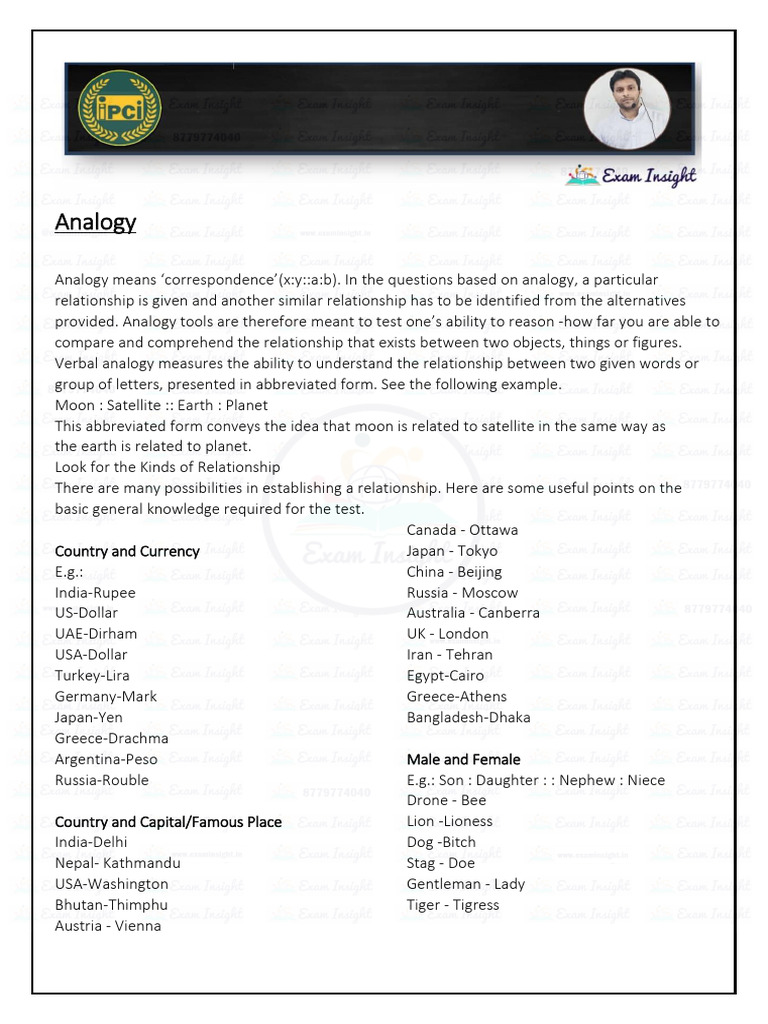 provided. Analogy tools are therefore meant to test one’s ability to reason -how far you are able to