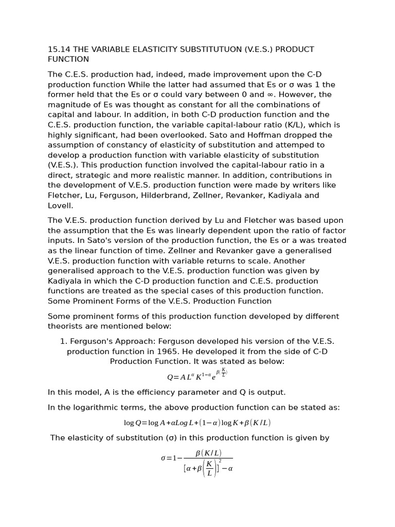 15.14 THE VARIABLE ELASTICITY SUBSTITUTUON (V.E.S.