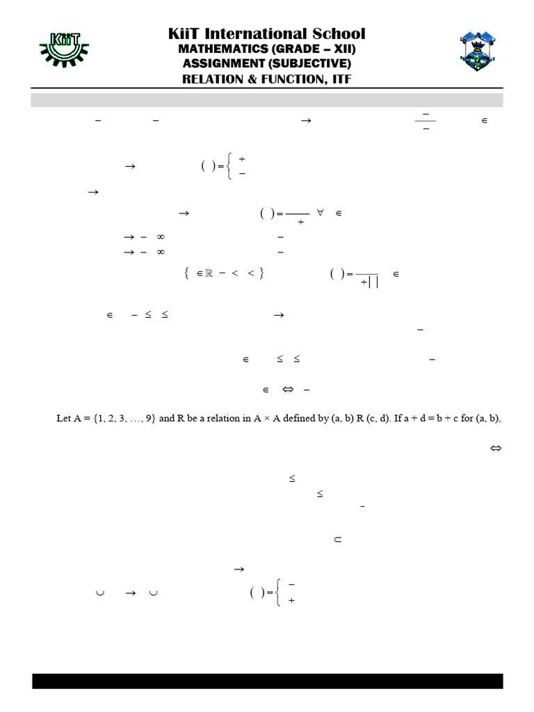 1. If A = R – {3}, B = R – {1}. Consider the function f : A B be defined by f(x) = , for all x A.