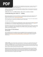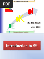 method for demonstrating top management support is to mandate and to participate in the visible promotion of 5S. Some ways to do this are: Designated 5S days. Select one day per month or quarter to emphasize 5S throughout the plant. Slogans. Select a 5S-related slogan, post it in public areas throughout the plant, pass out shirts with the slogan to successful 5S teams, etc. Public Announcements. In monthly or quarterly announcements and all-employee meetings, take some time to emphasize the importance of the 5S program. Seminars. Have employees participate in seminars throughout the year, including those that are 5Srelated. Performance Measurement and Reward System. The third key is to measure 5S performance in each work area and set up a system to reward teams that achieve 5S success. Organizations with successful 5S programs measure their performance with weekly audits using checklists and score sheets. Audit results are posted in public areas. This creates an atmosphere of friendly competition and will help instill pride in the teams. This measurement should be combined with a reward system; most successful organizations offer monthly or quarterly rewards for teams in various 5S categories that range from movie tickets to cash bonuses.