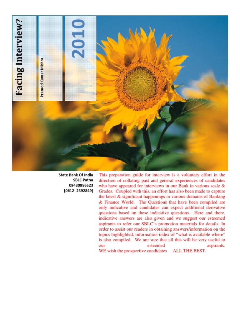 This preparation guide for interview is a voluntary effort in the direction of collating past and general experiences of candidates who have appeared for interviews in our Bank in various scale & Grades. Coupled with this, an effort has also been made to capture the latest & significant happenings in various domains of Banking & Finance World. The Questions that have been compiled are only indicative and candidates can expect additional derivative questions based on these indicative questions. Here and there, indicative answers are also given and we suggest our esteemed aspirants to refer our SBLCs promotion materials for details. In order to assist our readers in obtaining answers/information on the topics highlighted, information index of what is available where is also compiled. We are sure that all this will be very useful to our esteemed aspirants. WE wish the prospective candidates ALL THE BEST.