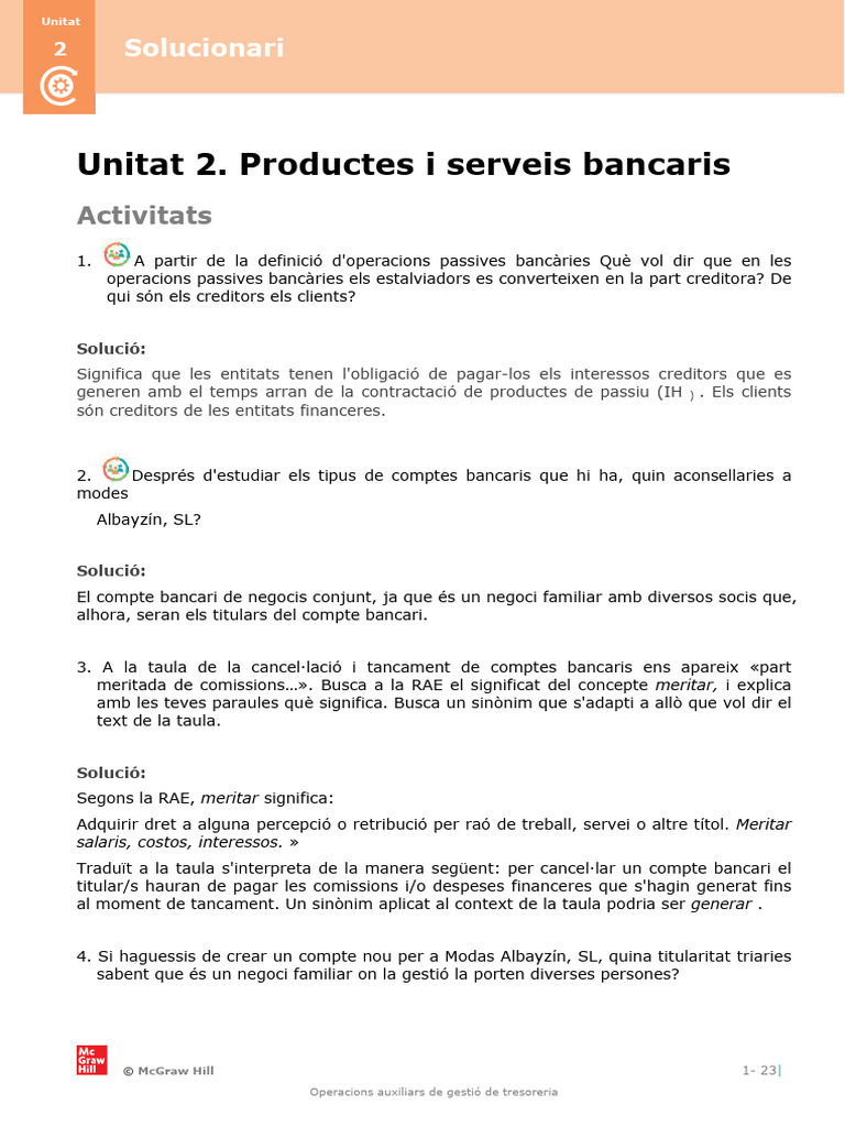 Les respostes dependran de l'entitat financera triada per l'alumnat, encara que ha de ser