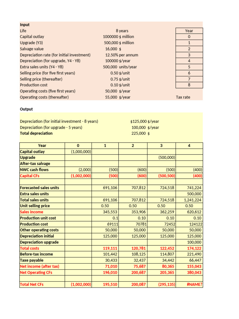 Depreciation (for upgrade, Y4 - Y8) 100000 $/year 4