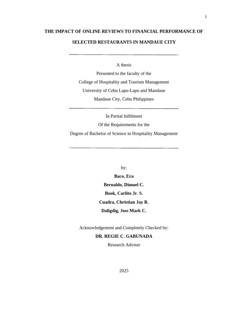 Mandaue, are conducting a research study entitled “The Impact of Online Reviews