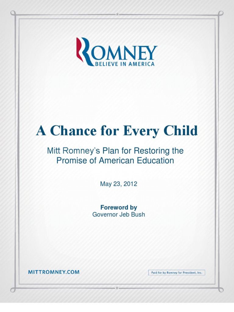 A Chance for Every Child: Mitt Romneys Plan for Restoring the Promise of American Education