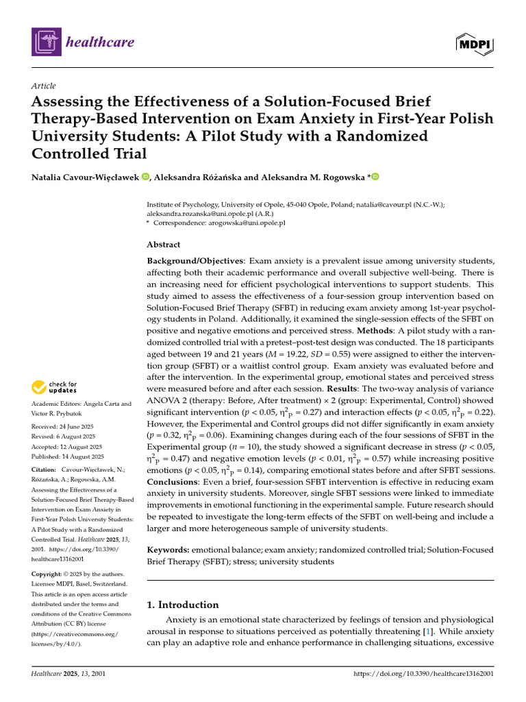 2001. [Link] Keywords: emotional balance; exam anxiety; randomized controlled trial; Solution-Focused