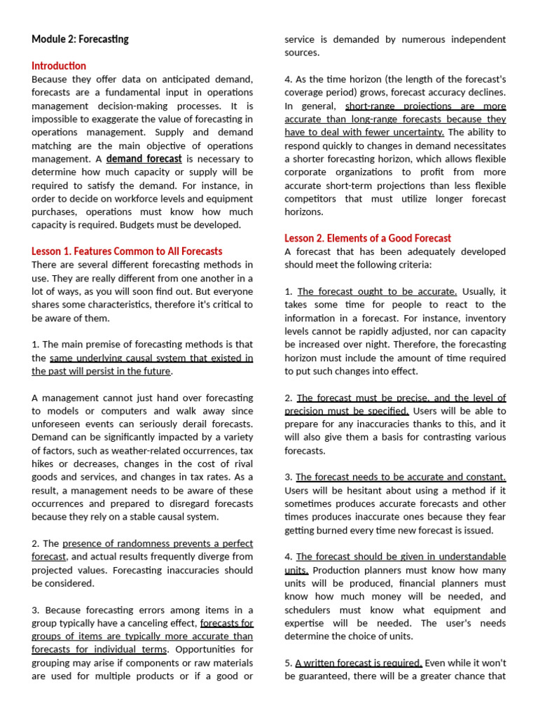 Lesson 2. Elements of a Good Forecast