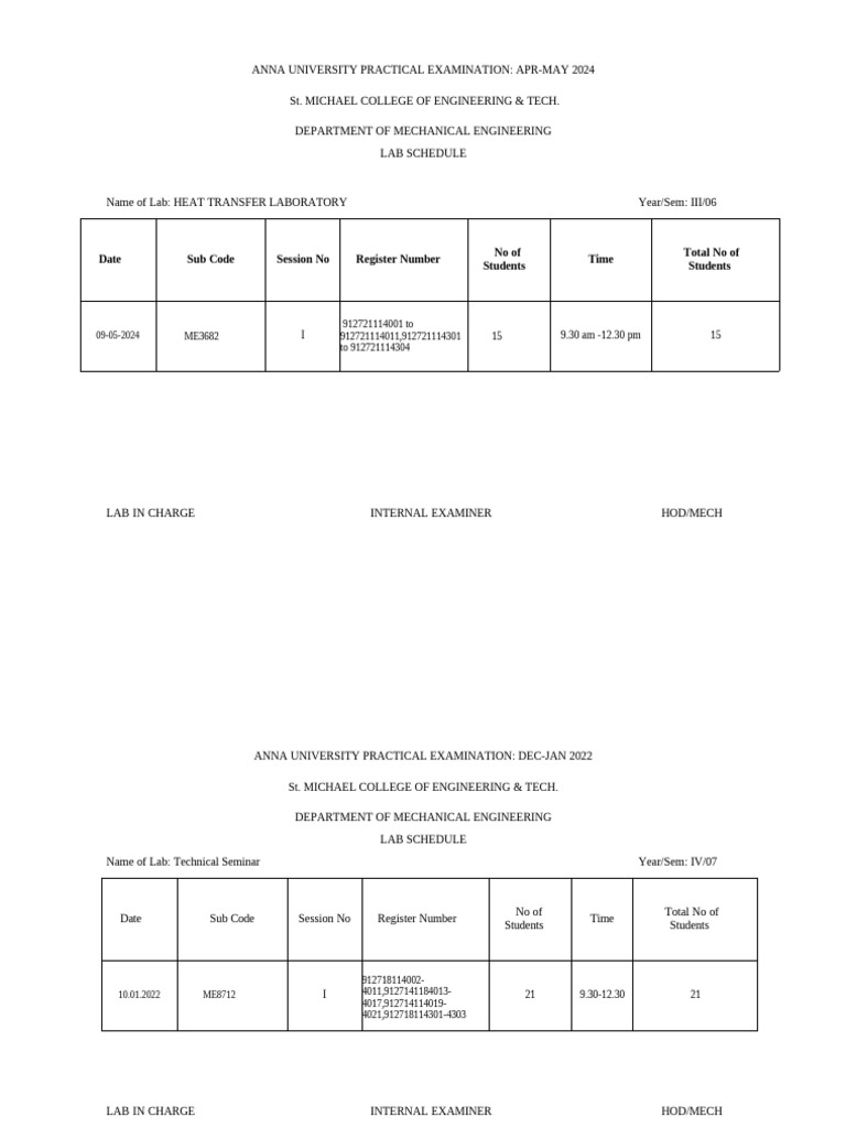 LAB IN CHARGE INTERNAL EXAMINER HOD/MECH