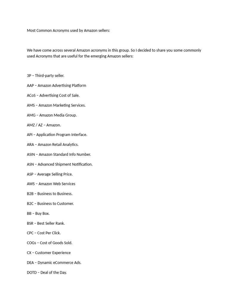 Most Common Acronyms used by Amazon sellers: