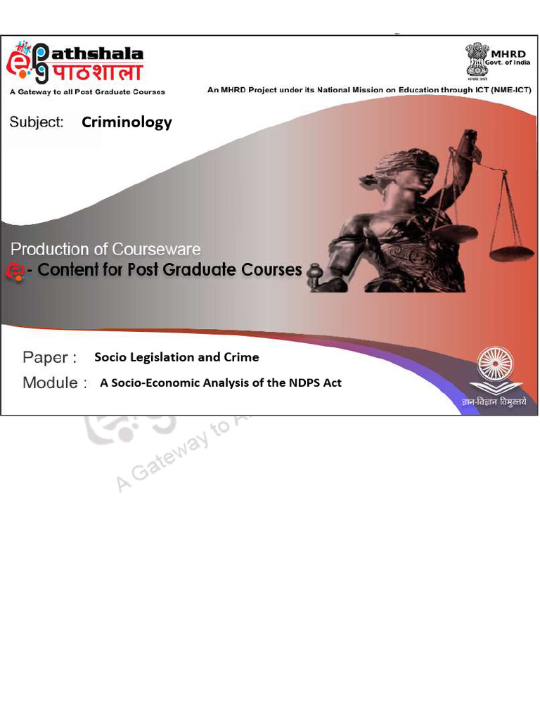 Module Name/Title A Socio-Economic Analysis of the NDPS Act