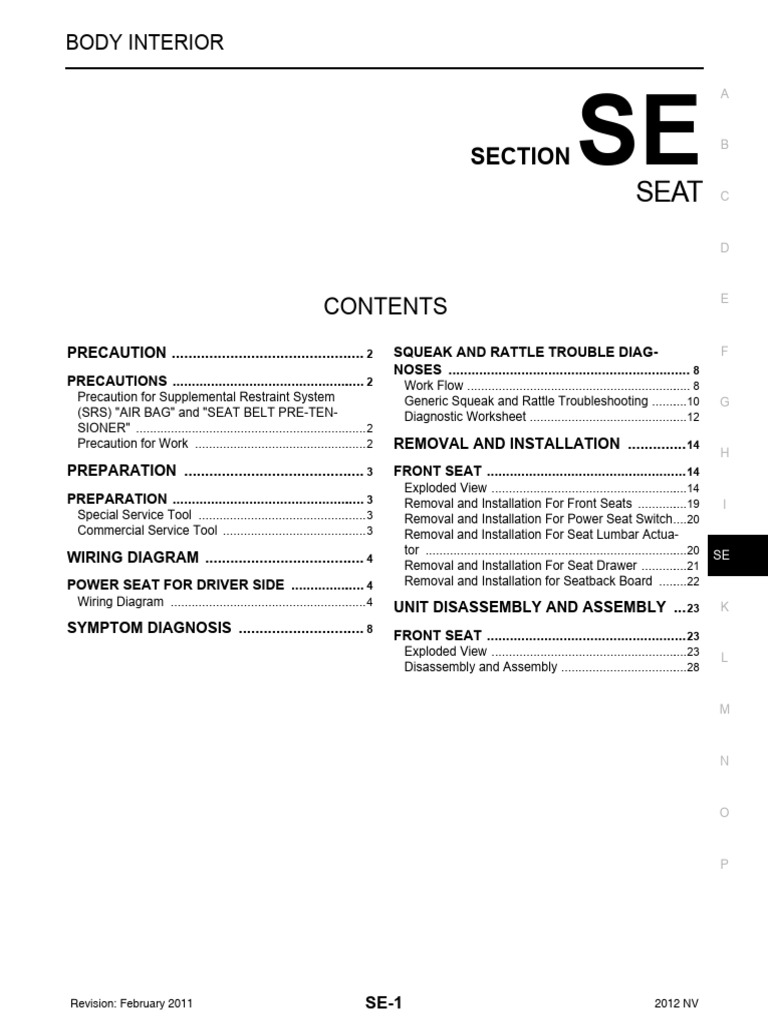 SYMPTOM DIAGNOSIS ............................... 8 FRONT SEAT .................................................... 23