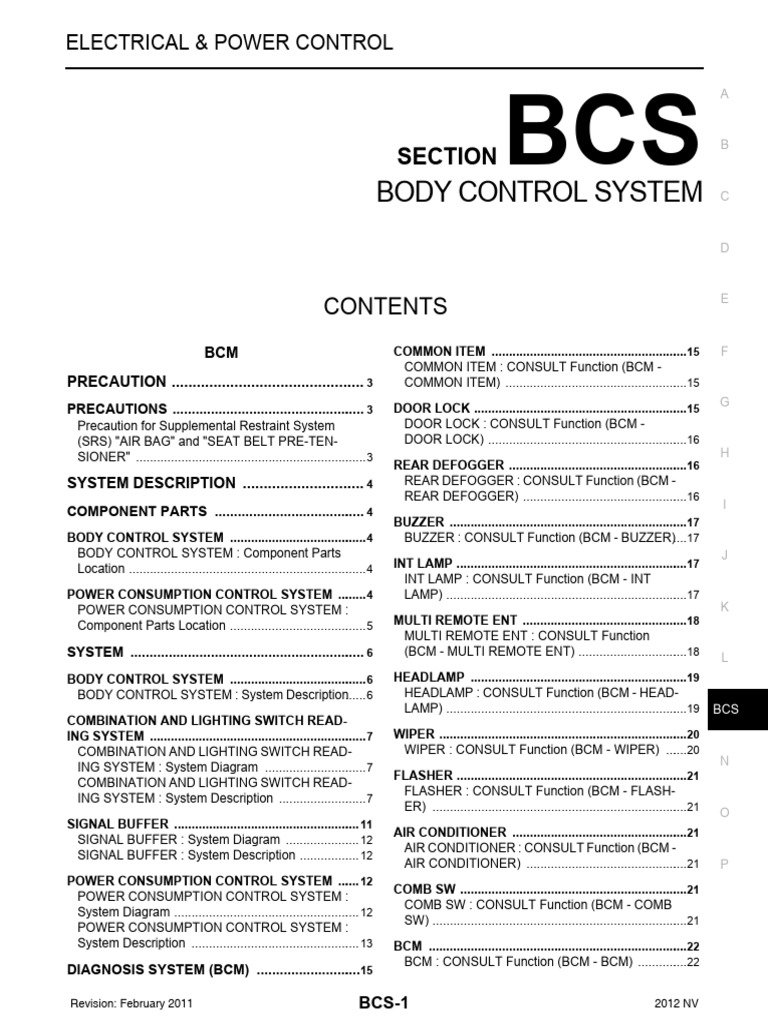 K BCM Replace BCM. Refer to BCS-52, "Removal and Installation". P