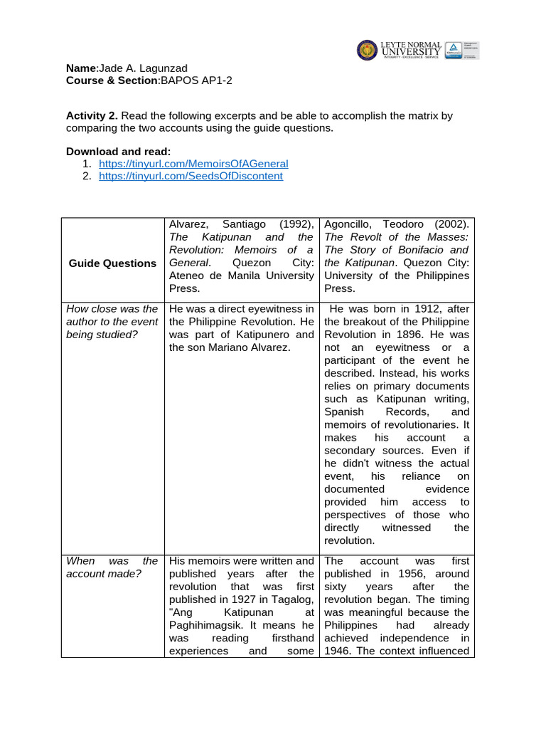 accounted for? Alvarez was part of the Agoncillo's work. He was a