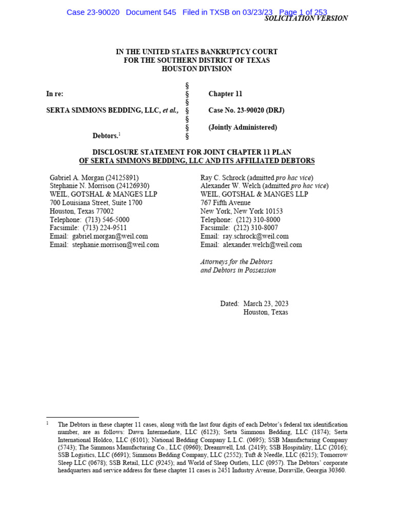 SERTA SIMMONS BEDDING, LLC, et al., § Case No. 23-90020 (DRJ)